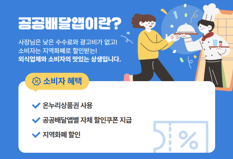 가장 큰 차이점은 수수료입니다. 민간 배달앱이 5 ~ 12%의 중개수수료를 받는 반면,