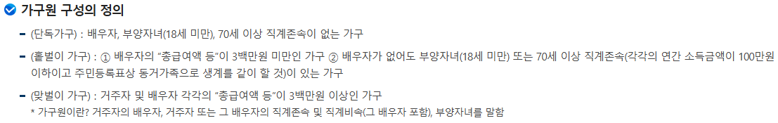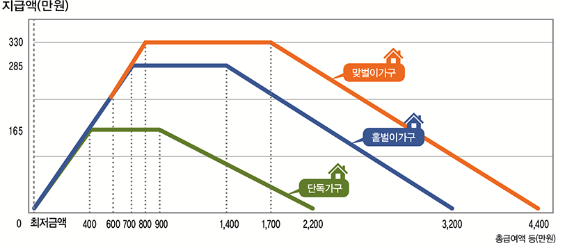 - 홑벌이가구: 연 소득 3,200만 원 미만