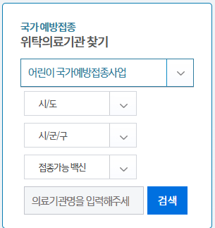 질병관리청 위탁의료기관 찾기 메뉴