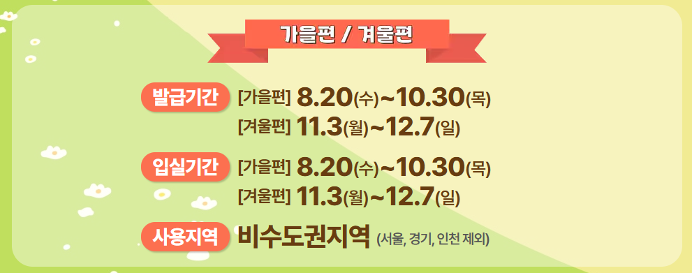 - 중복 발급 불가 (가을편과 특별재난지역편 동시 신청 불가)