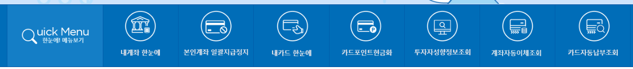 앱의 장점은 언제 어디서나 간편하게 조회할 수 있다는 점입니다. 특히 '내계좌한눈에', '내카드한눈에' 등의 메뉴를 통해 세분화된 정보 확인이 가능합니다.