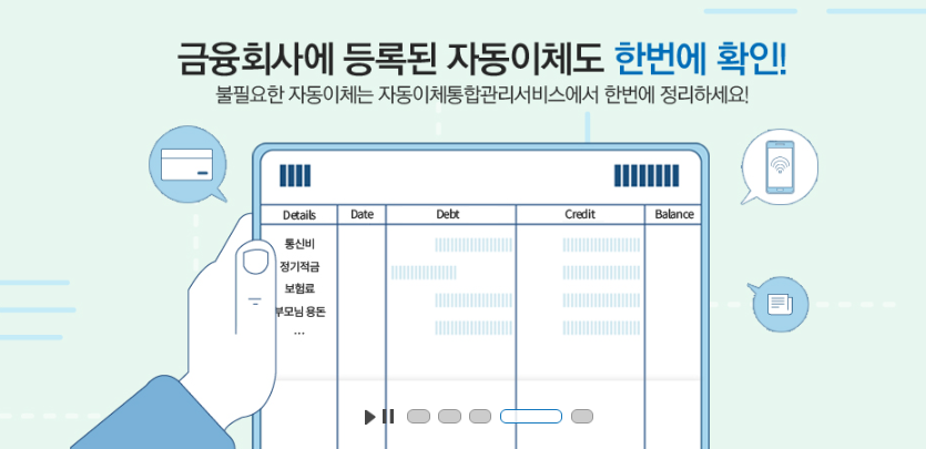 '내자동이체한눈에' 서비스를 통해 매달 빠져나가는 자동이체 내역을 한 번에 확인할 수 있습니다. 불필요한 자동이체가 있다면 바로 해지나 변경 절차를 진행할 수 있어 가계 관리에 큰 도움이 됩니다.