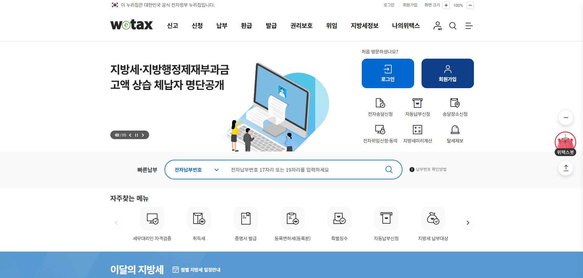 위택스는 대한민국 모든 지방세를 통합 관리하는 공식 플랫폼입니다: