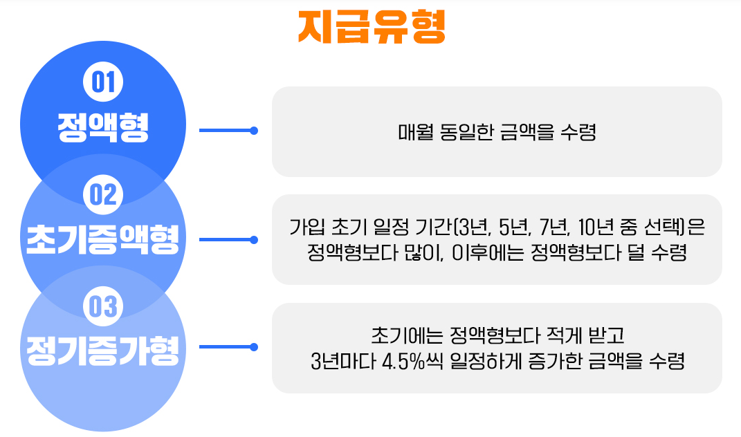 - 정기증가형: 초기에는 적게 받지만 3년마다 4.5%씩 증가