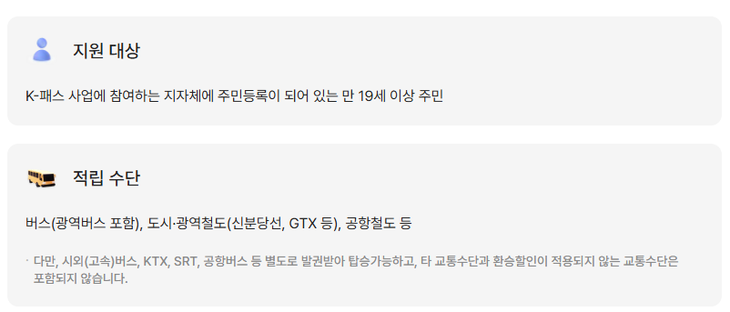 - 지역 내 모든 대중교통 적용