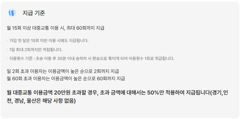 - 월 15회 이상 대중교통 이용 (첫 달은 예외)