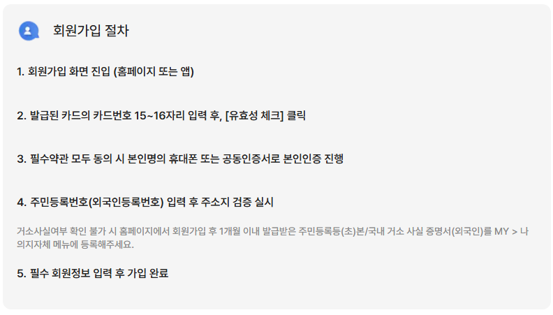 - 카드 준비 (기존 카드 또는 새로 발급)