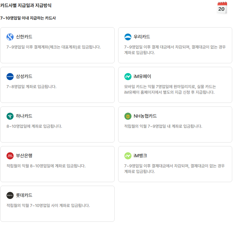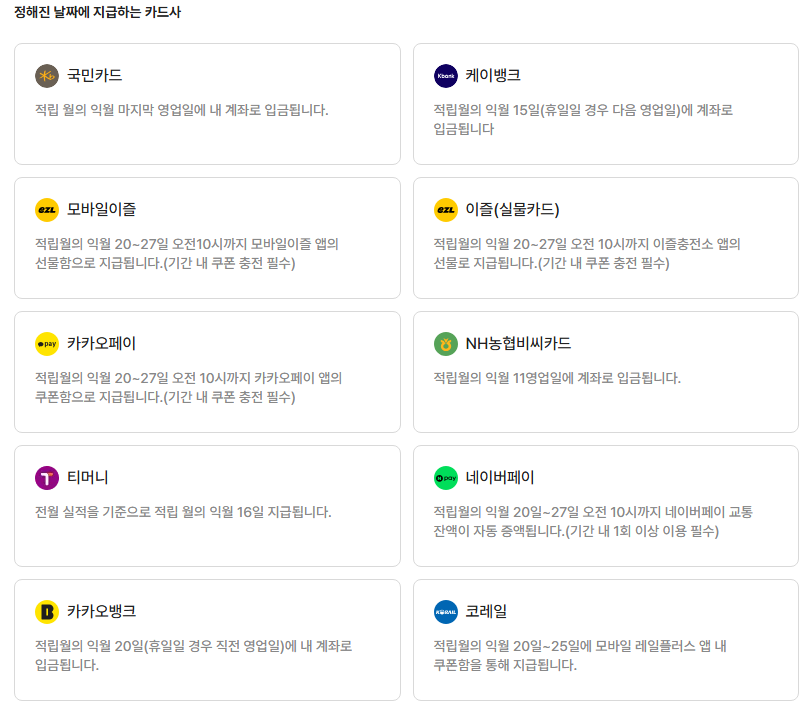 - 다음 달 카드별 지급방식으로 환급
