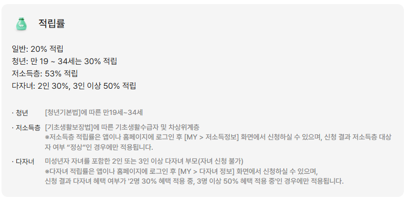 - 청년, 다자녀, 저소득층 해당