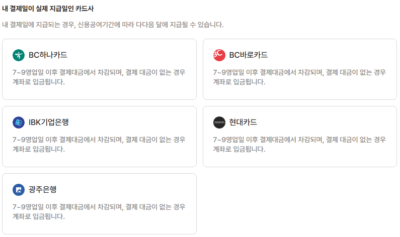 - 다음 달 카드별 지급방식으로 환급